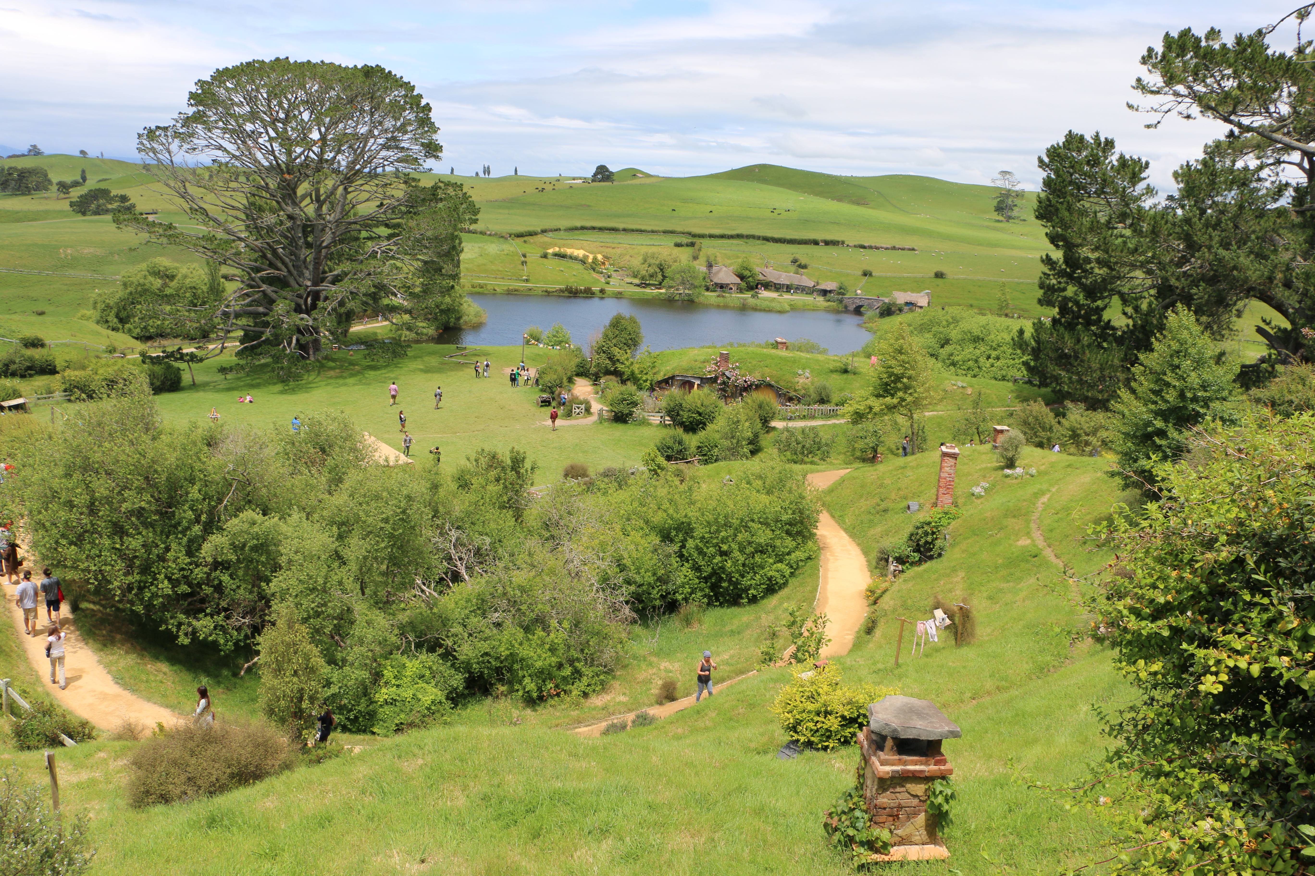 Səhər yeməyindən sonra səyahətə davam etdik. Şimal adasının ən maraqlı məkanlarından birinə – Hobbitona gedirdik. Hobbiton məşhur “The Lord of the Rings” filminin çəkiliş meydançasıdır. Filmdə hobbitlərin yaşayış məskəni kimi təqdim olunan bu ərazidə 44 kiçik ölçülü “ev” (hobbit hole) var.