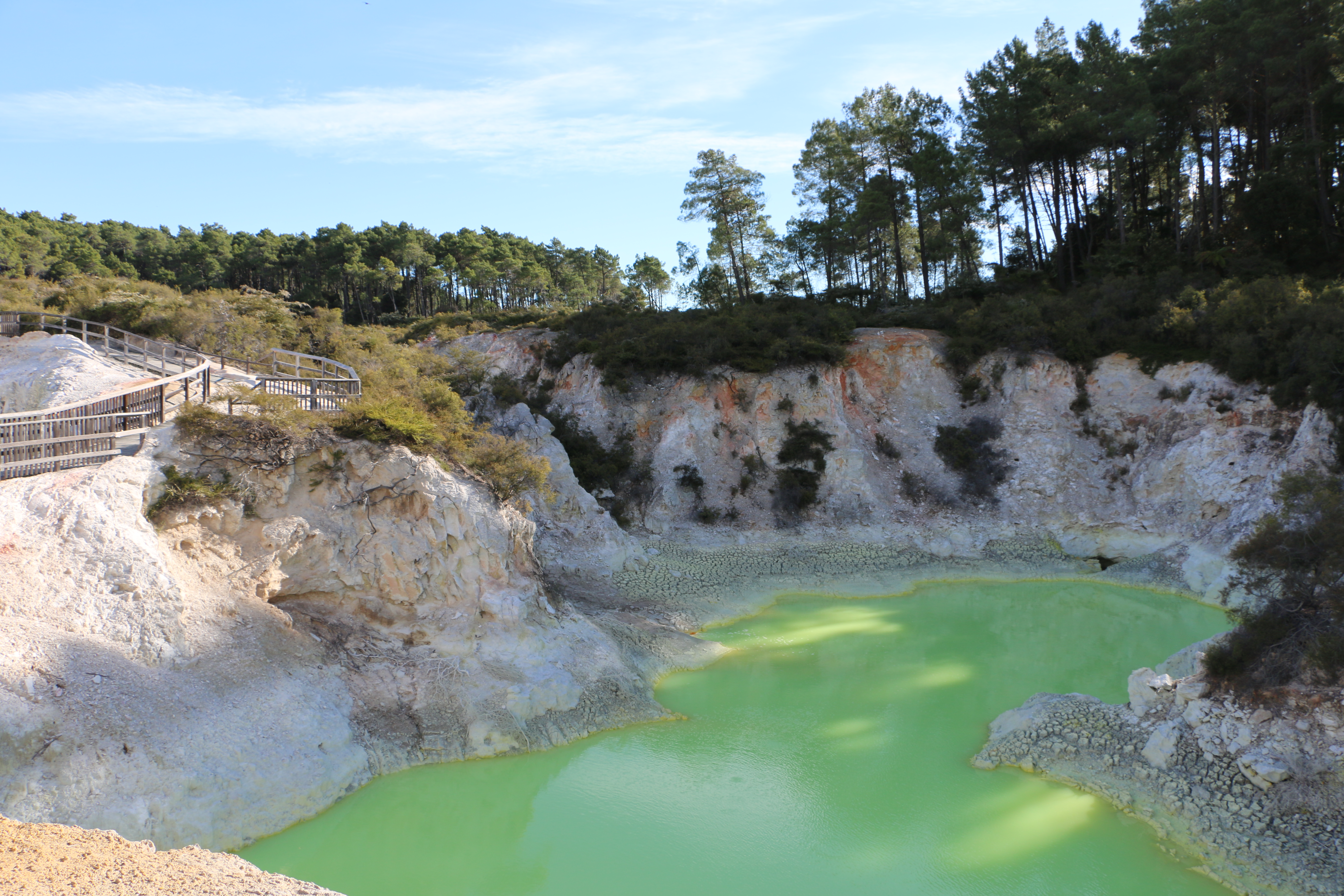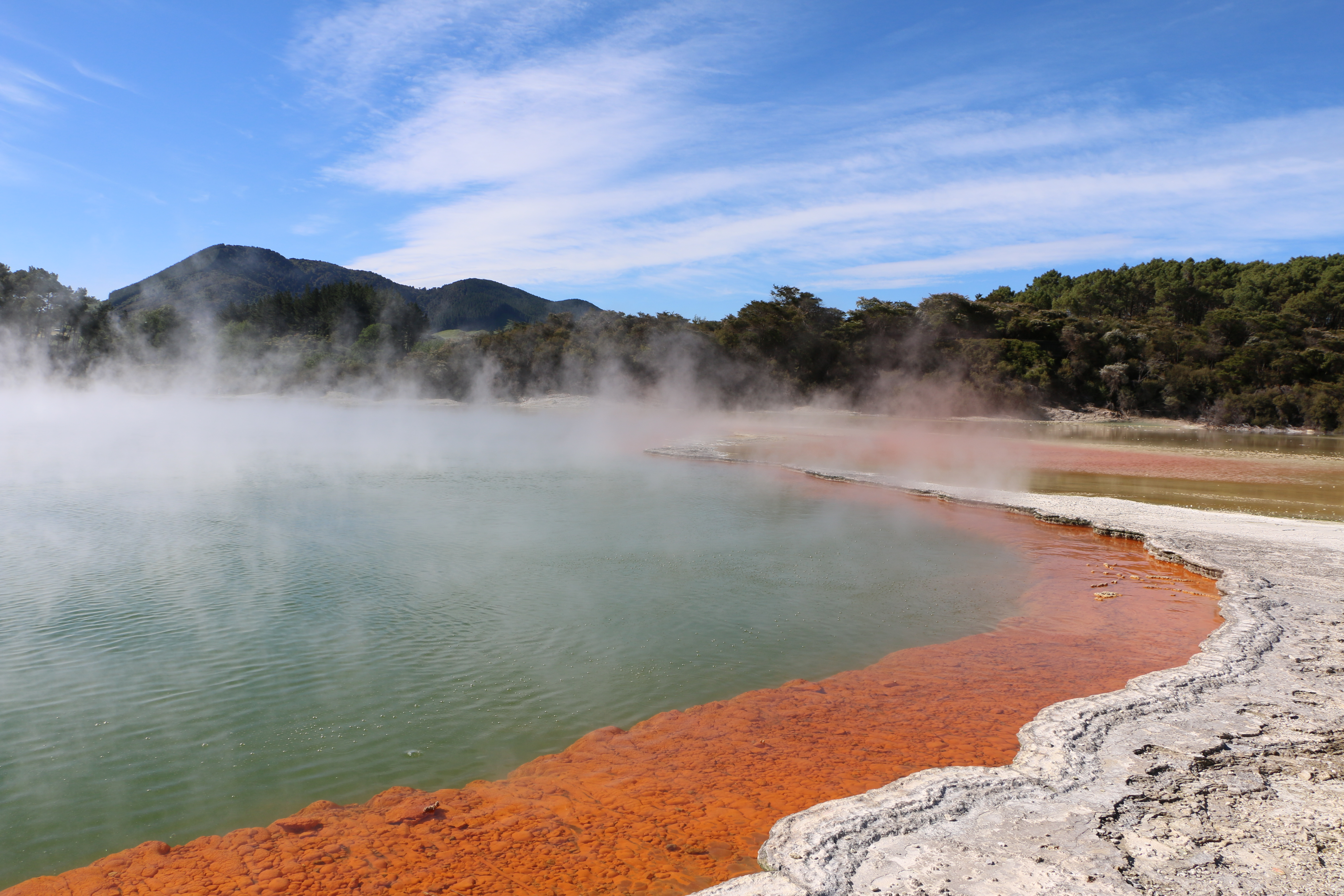 Hobbitondan çıxdıqdan sonra cənuba doğru yola davam etməyə başladıq. Yolüstü Rotarua geotermal bulaqlarına baxmaq istəyirdik. Bu əraziyə yaxınlaşdıqca havada kükürd iyini açıq-aydın hiss etmək olur. Bu ərazidə müxtəlif geotermal bualqlar var. Ən məşhurları kimi Waimangu, Waiotapo, Tikitere bulaqlarının adını çəkmək olar.