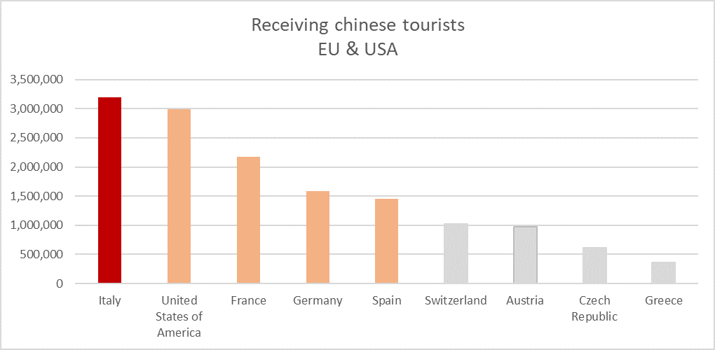 Bildiyiniz kimi, yoluxma sayına görə “rəqabət” hazırda aktiv olaraq 4 ölkə arasında gedir. ABŞ, İtaliya, İspaniya və Almaniya. Dünya Turizm Təşkilatının ən son rəqəmlərinə əsasən, İtaliya çinli turistlərin sayına görə dünya üzrə altıncı yerdə, Avropa Birliyində olan ölkələr arasında isə birinci yerdədir. Bu baxımdan, İtaliya Çinli turistlər üzrə rəqabətdə yalnız Cənub-Şərqi Asiyaya uduzur. Bu isə, ölkələrin Çinə qonşuluq əlaqələri ilə izah oluna bilər. Ümumiyyətlə, çinli turistlərin sayına görə Avropada ilk 5 yerdə olan ölkə koronavirus yoluxmasına görə ilk altılıqdadır.